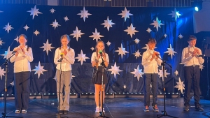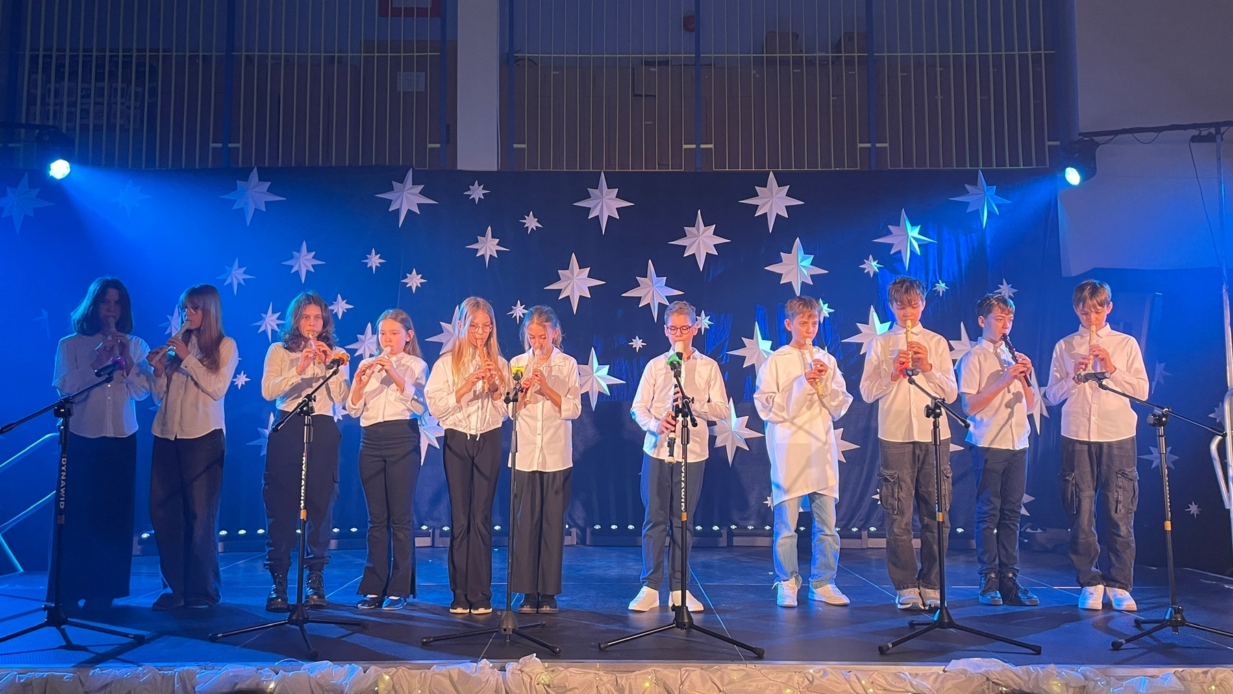 W magicznej scenerii odbyły się występy artystyczne przedszkolaków oraz uczniów klas 1-7, którzy zaprezentowali zimowe i świąteczne piosenki, wprowadzając wszystkich w radosny, przedświąteczny nastrój.