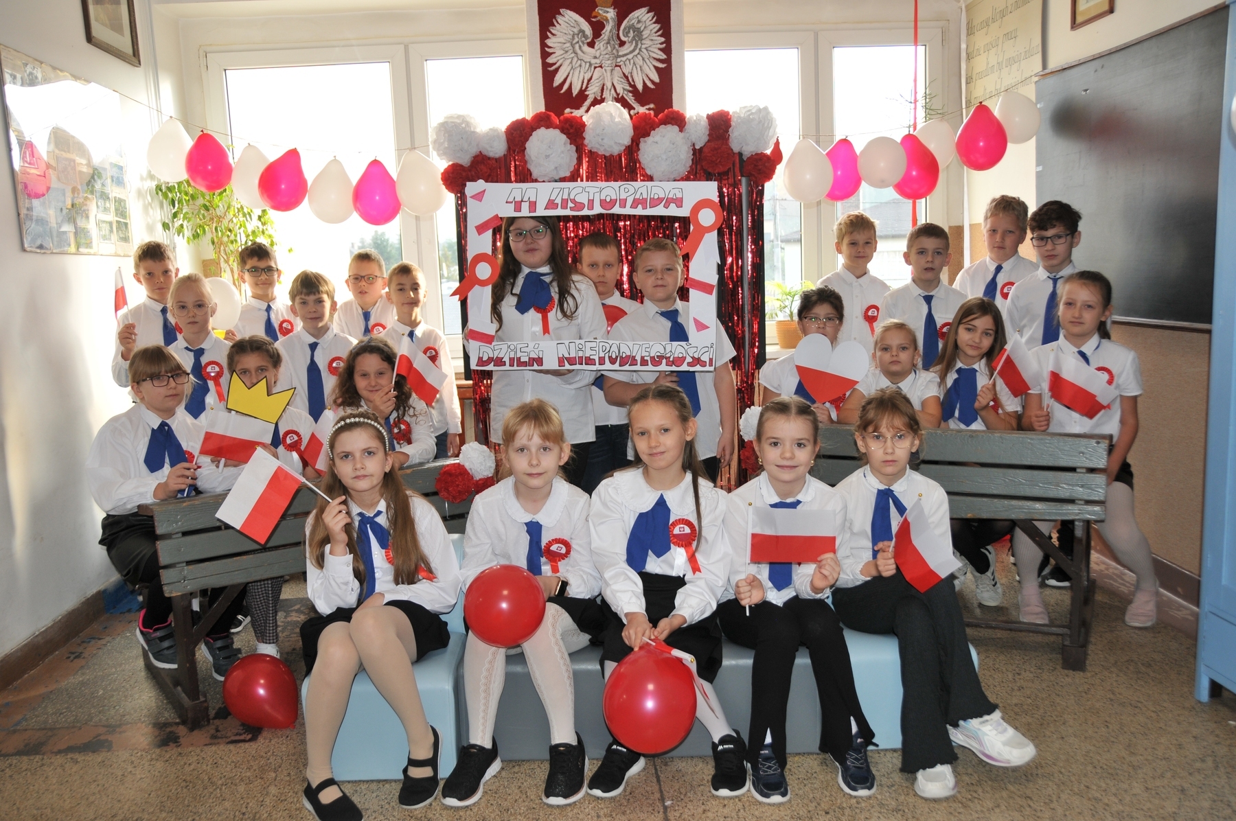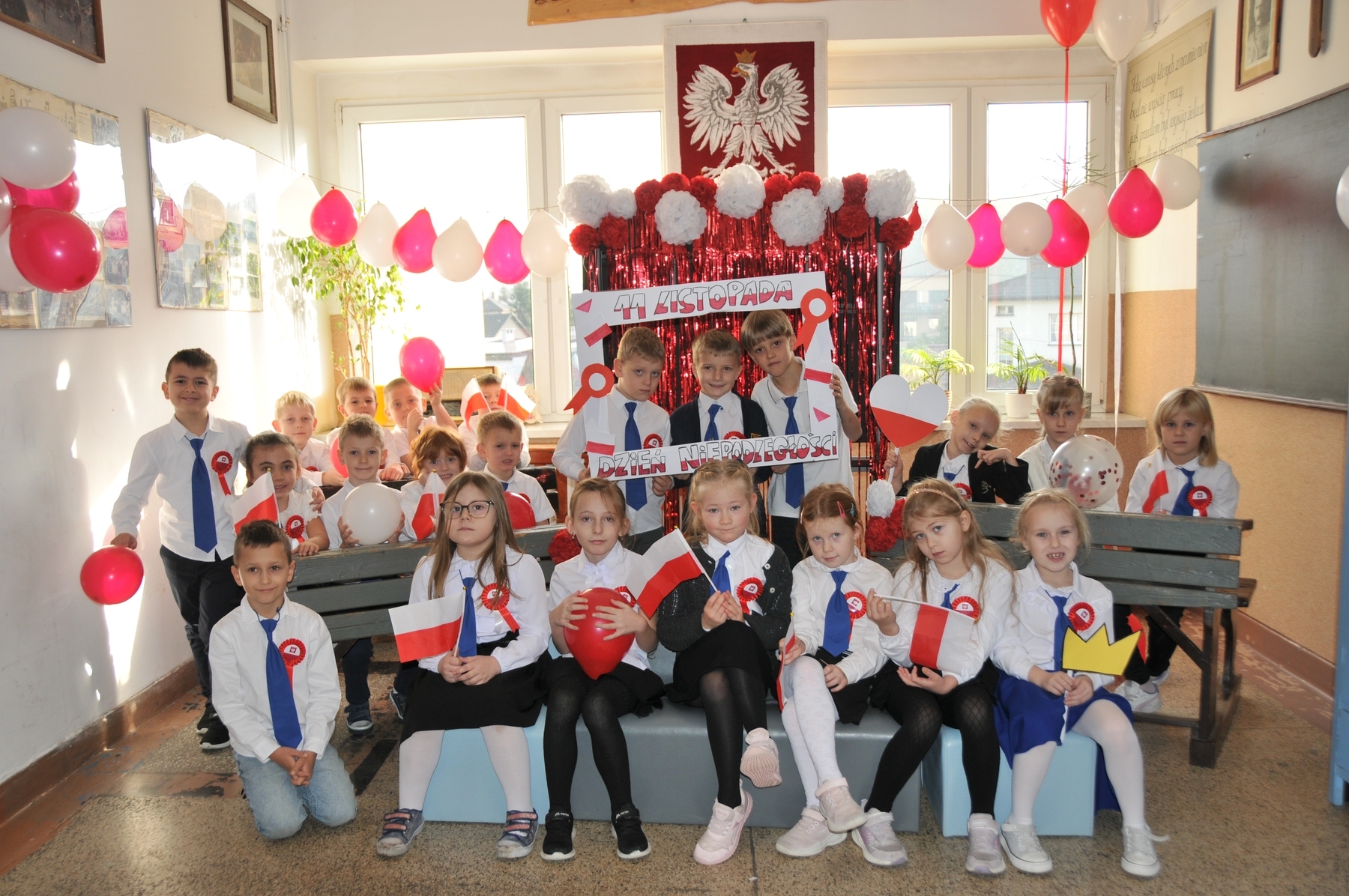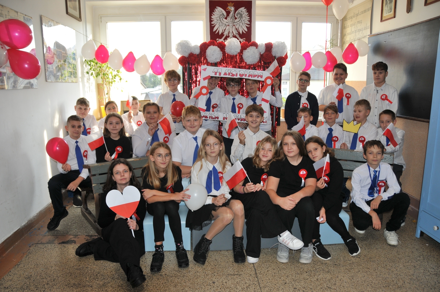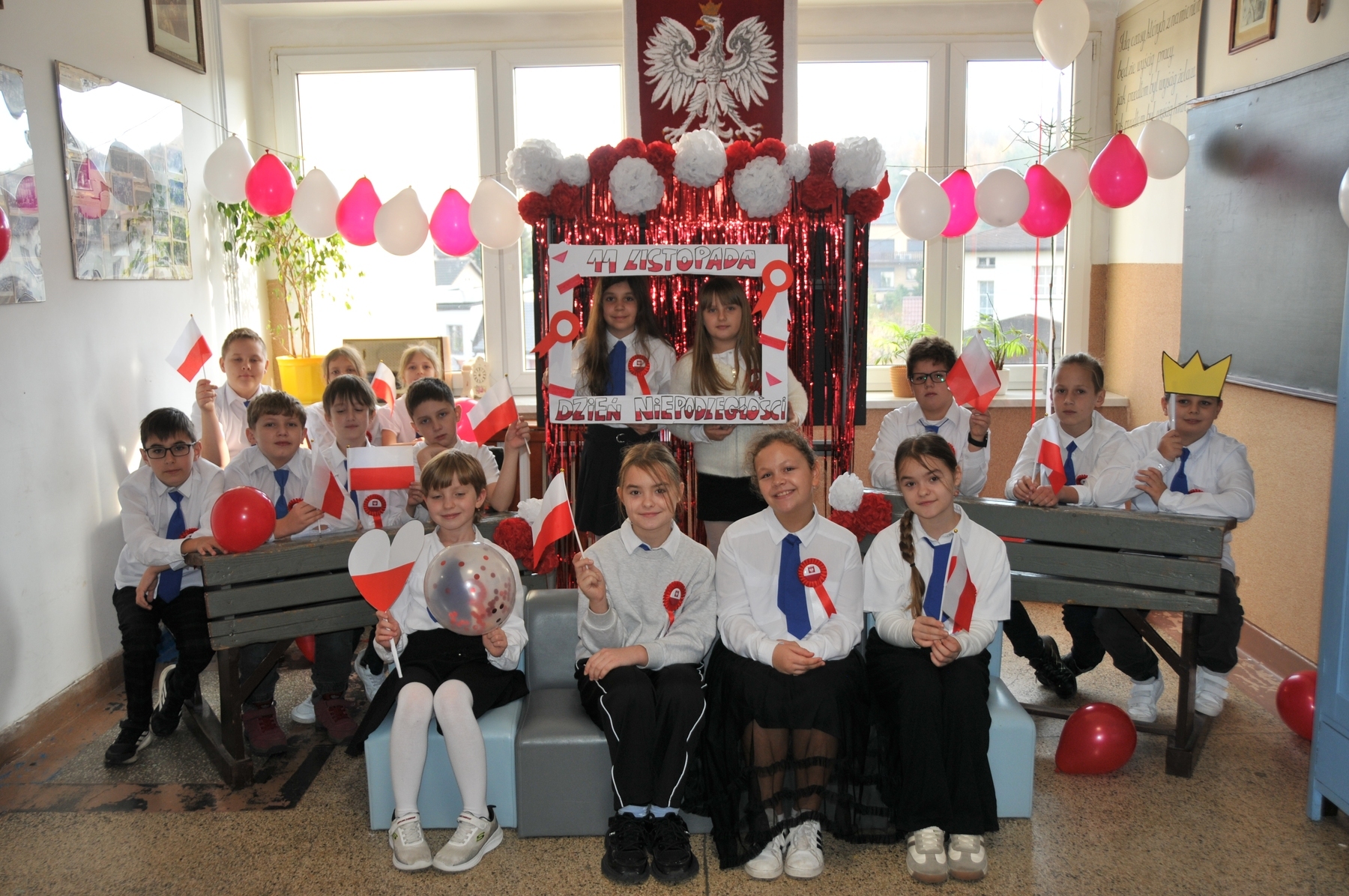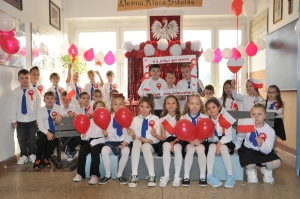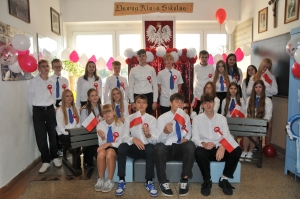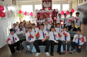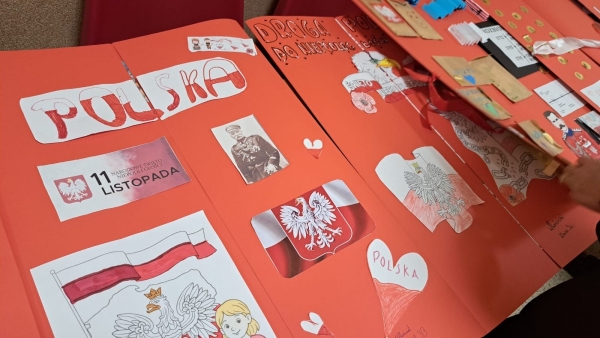 Z okazji Narodowego Święta Niepodległości w naszej szkole odbył się dzień projektowy, podczas którego klasy rywalizowały w różnorodnych konkurencjach. Uczniowie mogli wykazać się talentem muzycznym w konkursie pieśni patriotycznej, sprawnością i wiedzą historyczną podczas patriotycznych podchodów, kreatywnością w przygotowaniu lapbooków o tematyce niepodległościowej, a także starannością i estetyką pisma w konkursie kaligraficznym, który polegał na przepisaniu hymnu narodowego. Każda klasa miała okazję również obejrzeć wzruszające przedstawienie w wykonaniu szkolnego teatru Frykas oraz zrobić sobie pamiątkowe zdjęcie z biało-czerwonymi akcentami i patriotycznymi rekwizytami w przygotowanej na tę okazję fotobudce. Wszyscy chętnie pozowali, a wesoła i radosna atmosfera udzielała się każdemu. To był wyjątkowy sposób na wspólne świętowanie i pokazanie naszej miłości do ojczyzny!